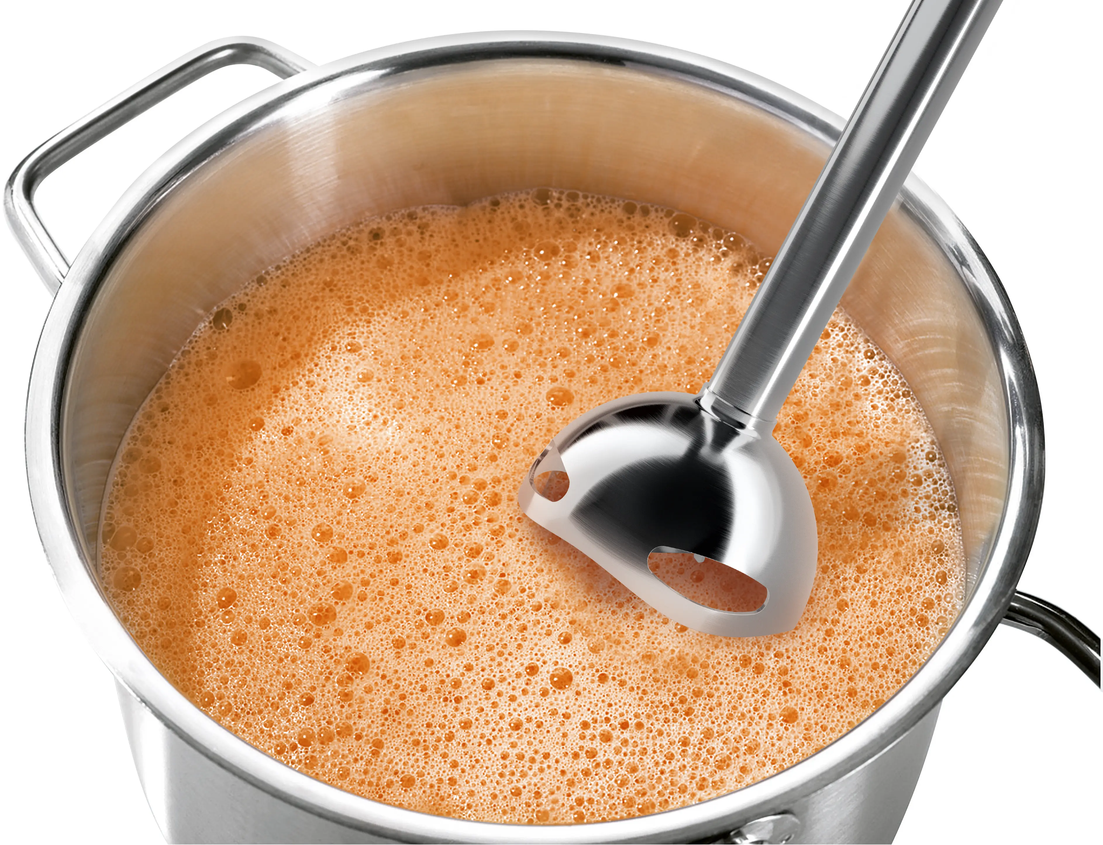 Vysoce kvalitní nerezová mixovací noha je vhodná k přípravě chutných horkých polévek.