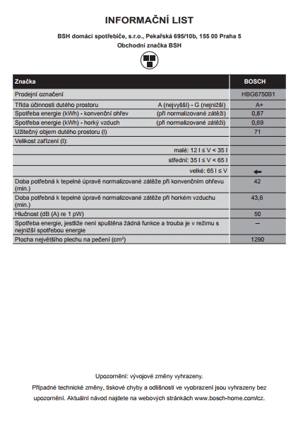 | Objem trouby | 71,0 l |