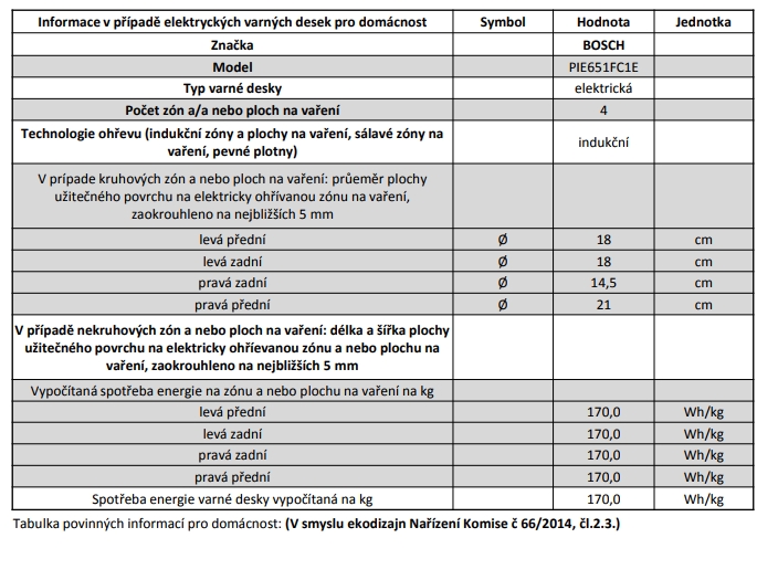 • Varné zóny: 1 x O 180 mm, 1.8 kW (max. výkon 3.1 kW) indukční varná zóna; 1 x O 180 mm, 1.8 kW (max. výkon 3.1 kW) indukční varná zóna; 1 x O 145 mm, 1.4 kW (max. výkon 2.1 kW) indukční varná zóna;1 x O 210 mm, 2.2 kW (max. výkon 3.7 kW) indukční varná zóna