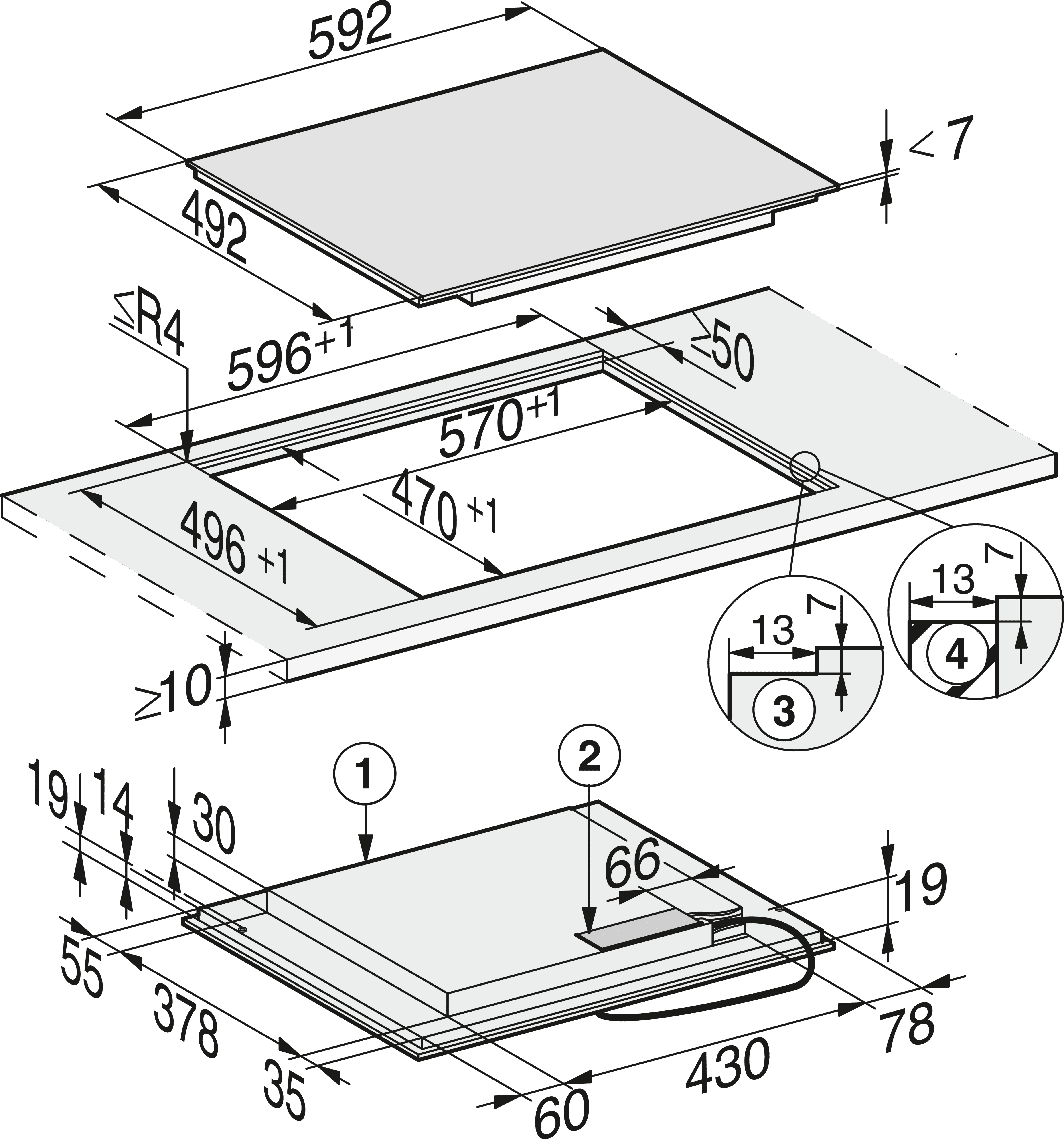 Vnější rozměr výřezu v mm (hloubka) při instalaci se zapuštěním 496