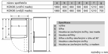 rozměry spotřebiče (V x Š x H) : 186.0 cm x 60.0 cm x 66.0 cm