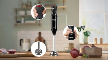 Patentovaný Bosch "Click - mechanismus" umožnuje snadné sejmutí mixovací nohy a příslušenství