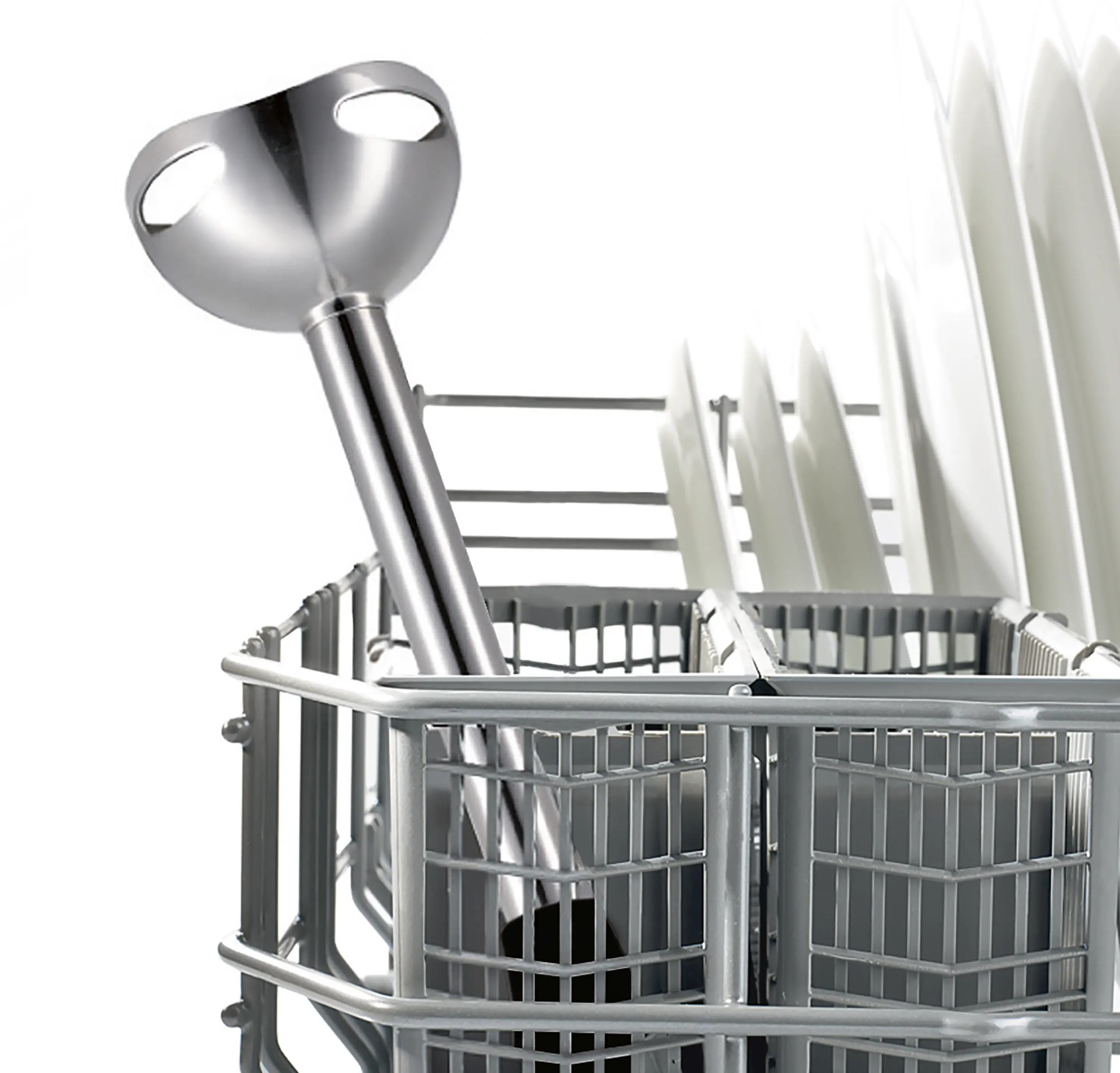 Vysoce kvalitní nerezová mixovací noha: pachově i chuťově neutrální, nerezavějící úprava a proto vhodná pro mytí v myčce.