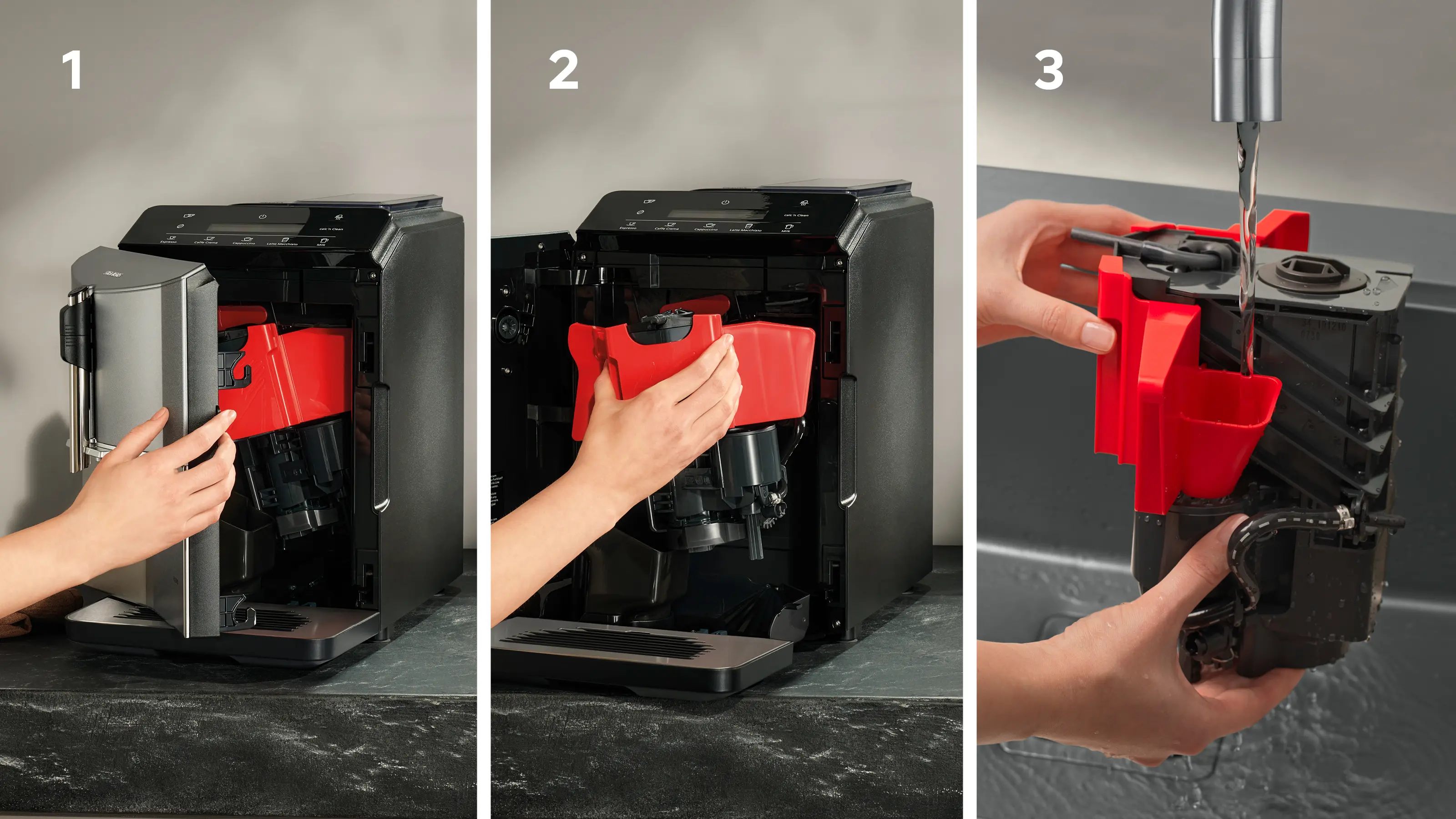 Hygiena a pohodlí je zaručena - vyjímatelná spařovací jednotka.Pro hygienické čištění se dá spařovací jednotka snadno vyjmout, opláchnout pod tekoucí vodou a poté vrátit. To zajišťuje stále dobrou chuť kávy a prodlužuje životnost. Takže se můžete vrátit k vychutnání čisté vůně těch nejlepších kávových specialit. | ![]() |
