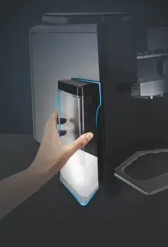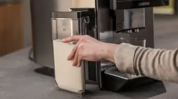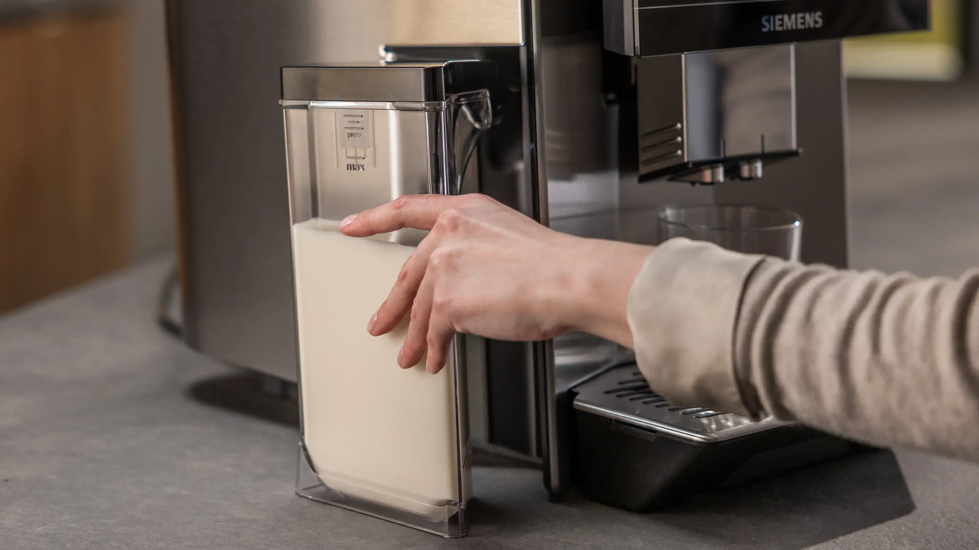 Integrovaná nádoba na mléko: Snadné vyjmutí, praktické skladování a snadno se čistí v myčce.