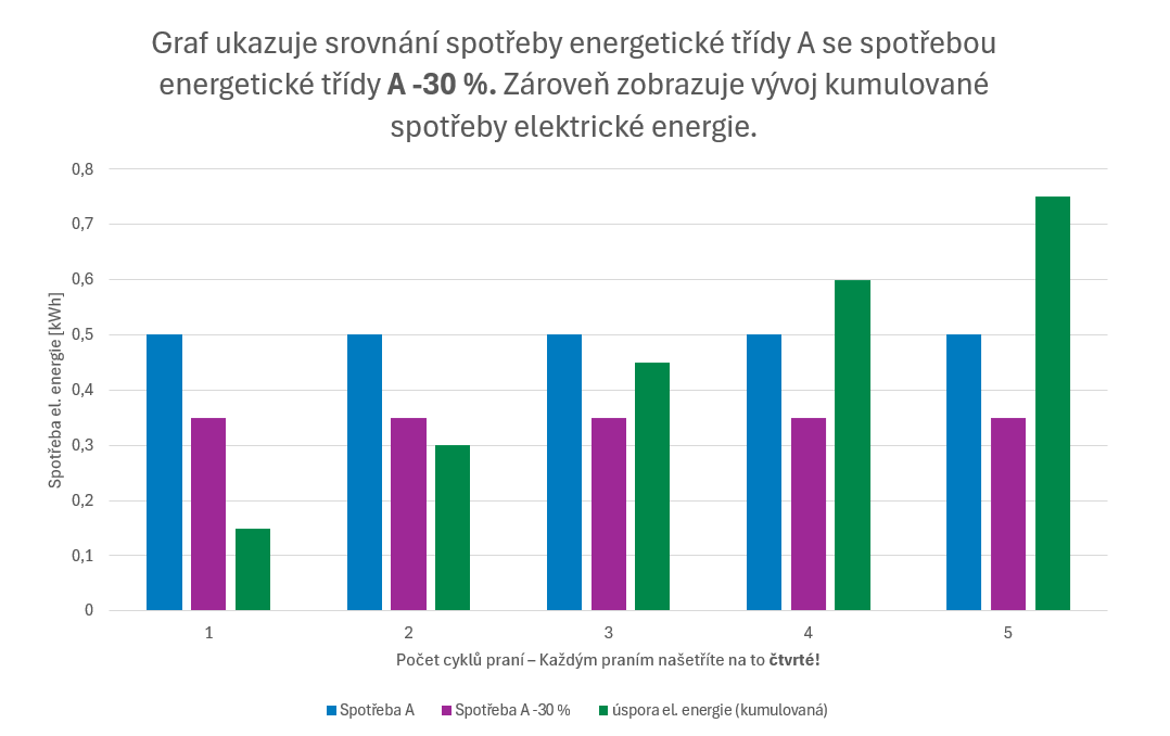 **** o 30 % účinnější (35 kWh/100 cyklů) než mezní hodnota (51 kWh/100 cyklů) třídy energetické účinosti A podle delegovaného nařízení EU 2019/2014