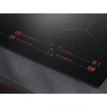 | Kontrolní funkce | 3 krokové využití zbytkového tepla, akustický signál, funkce POWER (Booster) = rychlé ohřátí, dětský zámek, Eco časovač (využití zbytkového tepla), flexibilní Power Management, Heat memory, propojen s odsavačem Hob2Hood, Samostatné ovládací zóny, zajištěn |
