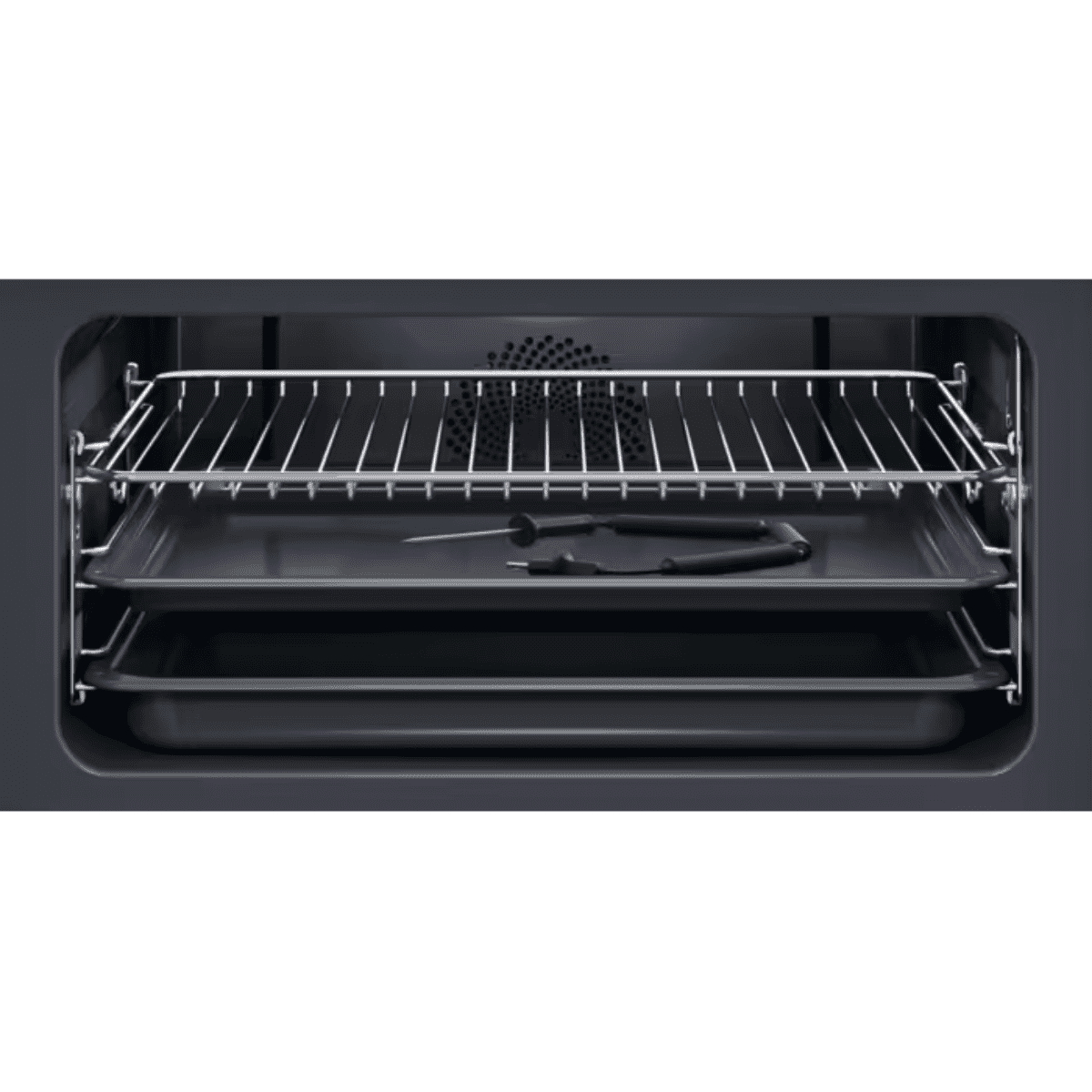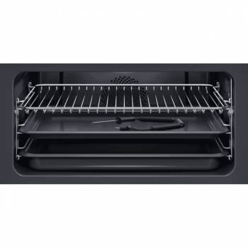 Výbava trouby - plechy: 1 smaltovaný koláčový plech na pečení, 1 odkapávací pekáč šedý smalt