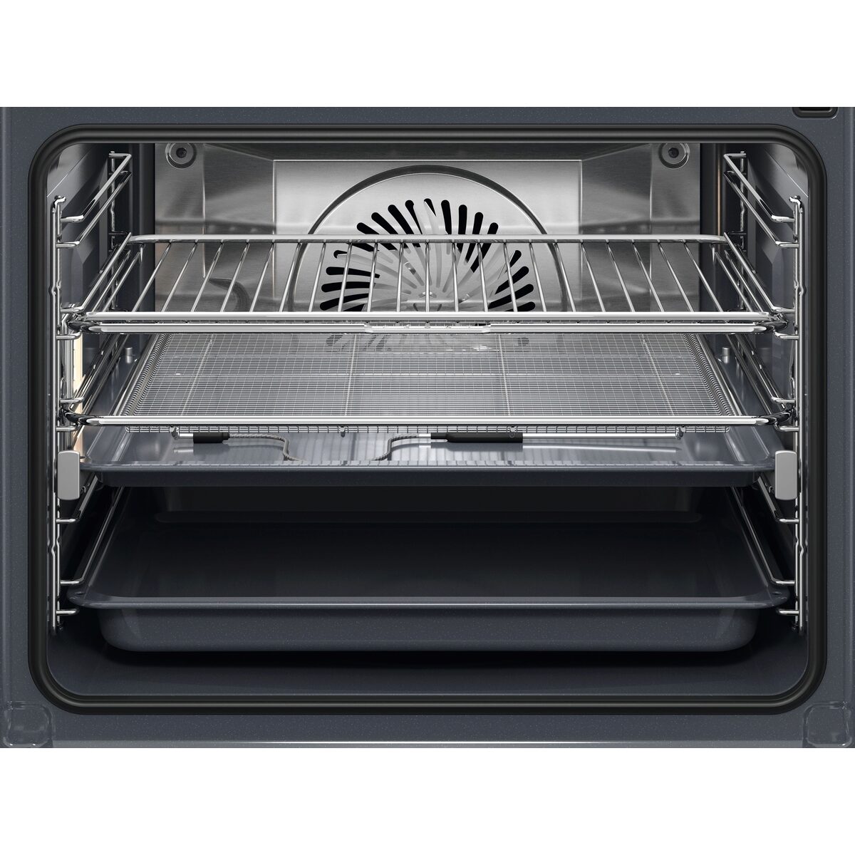 Výbava trouby - plechy: 1 smaltovaný koláčový plech na pečení, 1 odkapávací pekáč šedý smalt, 1 sada s děrovaným pekáčem 1/2