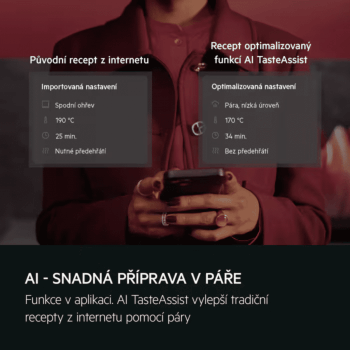 Středně propečený steak, dušená zelenina nebo ryba? Ať je recept jakýkoli, trouba 9000 ProAssist s funkcí SteamPro zajistí dotykem tlačítka perfektní výsledky. Ohřívání na páře osvěží zbytky a zachová 90 % vitamínu C – to vše při nižší spotřebě energie.