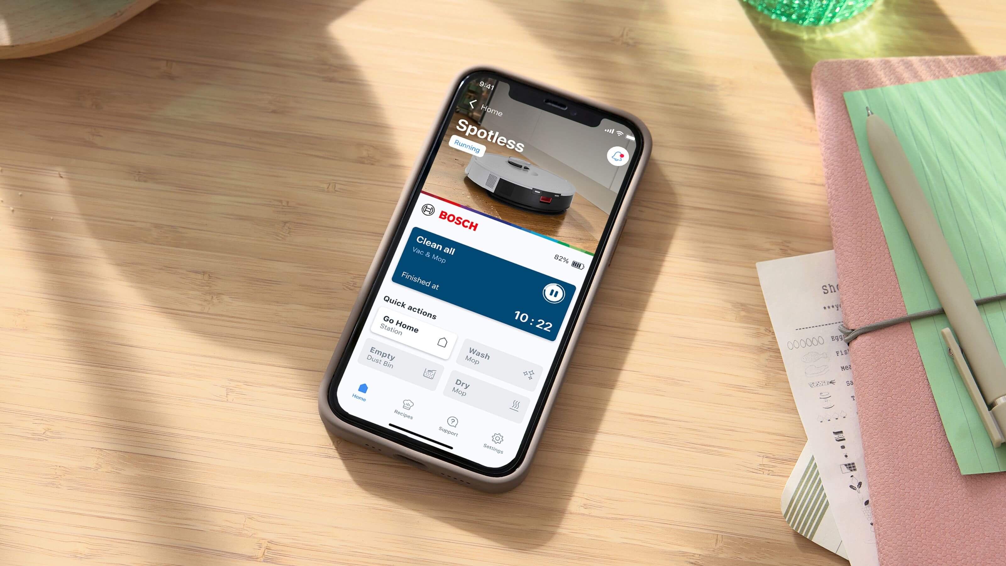 Aplikace Bosch Home Connect: snadno se spáruje s robotem, nabízí intuitivní ovládání, přehledná oznámení a uživatelsky přívětivý obsah podpory