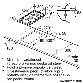 rozměry pro vestavbu (V x Š x H) : 45 x 270 x 490 - 500 mm