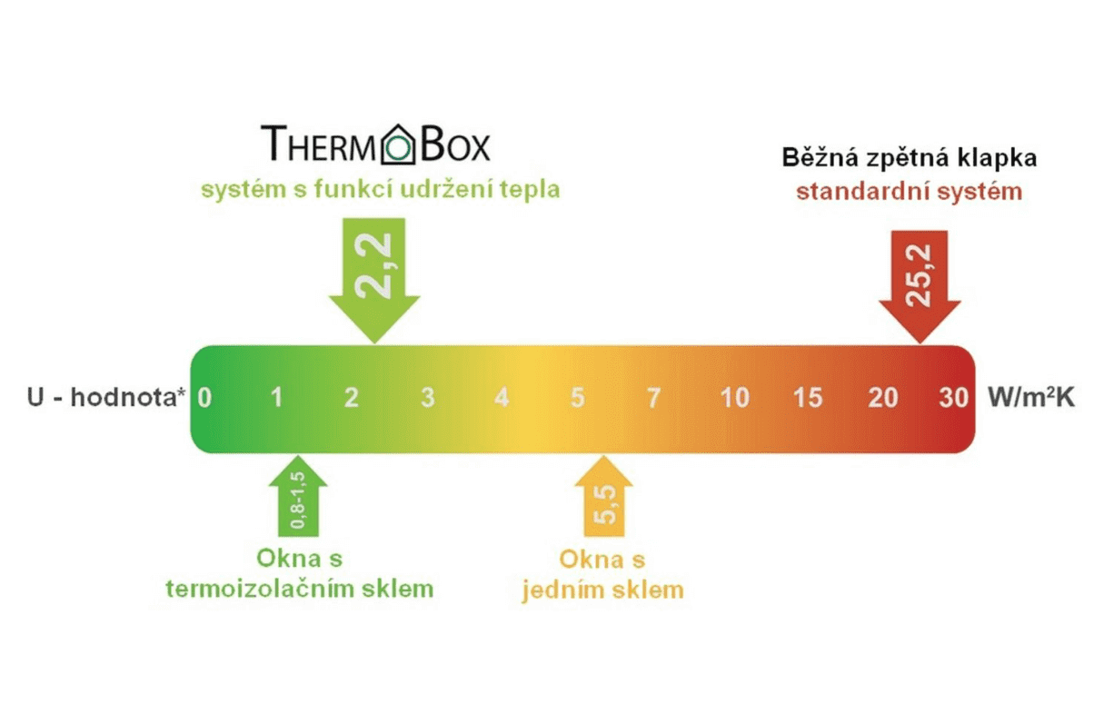 Systém Thermobox se skládá ze tří po sobě jdoucích zpětných klapek s magnetickým zavíráním.