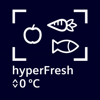 hyperFreshPřihrádka hyperFresh prodlužuje čerstvost potravin a díky posuvnému voliči úrovně vlhkosti se s ní velmi snadno zachází. Speciální tvar a funkce zaručují ideální prostředí pro ovoce a zeleninu. Výsledkem je lepší kvalita, čerstvost a vynikající chuť. | ![]() |