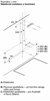 | Minimální vzdálenost nad plynovou varnou deskou | 650 mm |