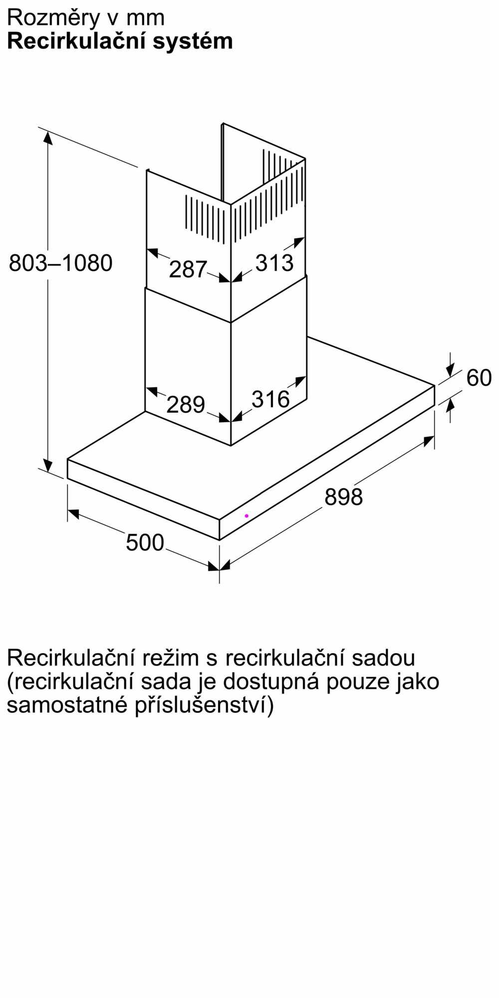rozměry spotřebiče pro recirkulaci (V x Š x H): 803-943 x 898 x 500 mm