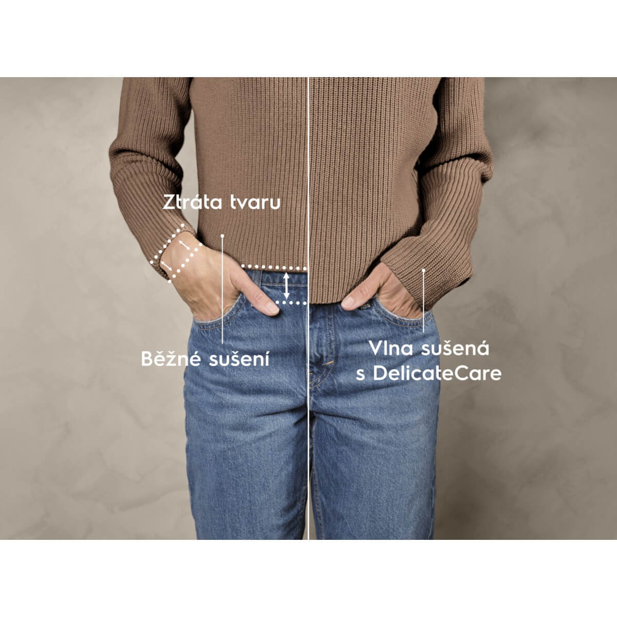 Sušička s tepelným čerpadlem 800 UltraCare využívá technologii 3DSense pro zjištění vlhkosti do hloubky pro důkladné usušení každého oblečení. Perfektně suší i silnější textilie, jako jsou přikrývky nebo péřové bundy, které zůstávají nadýchané a nepřichází o svou izolační funkci.