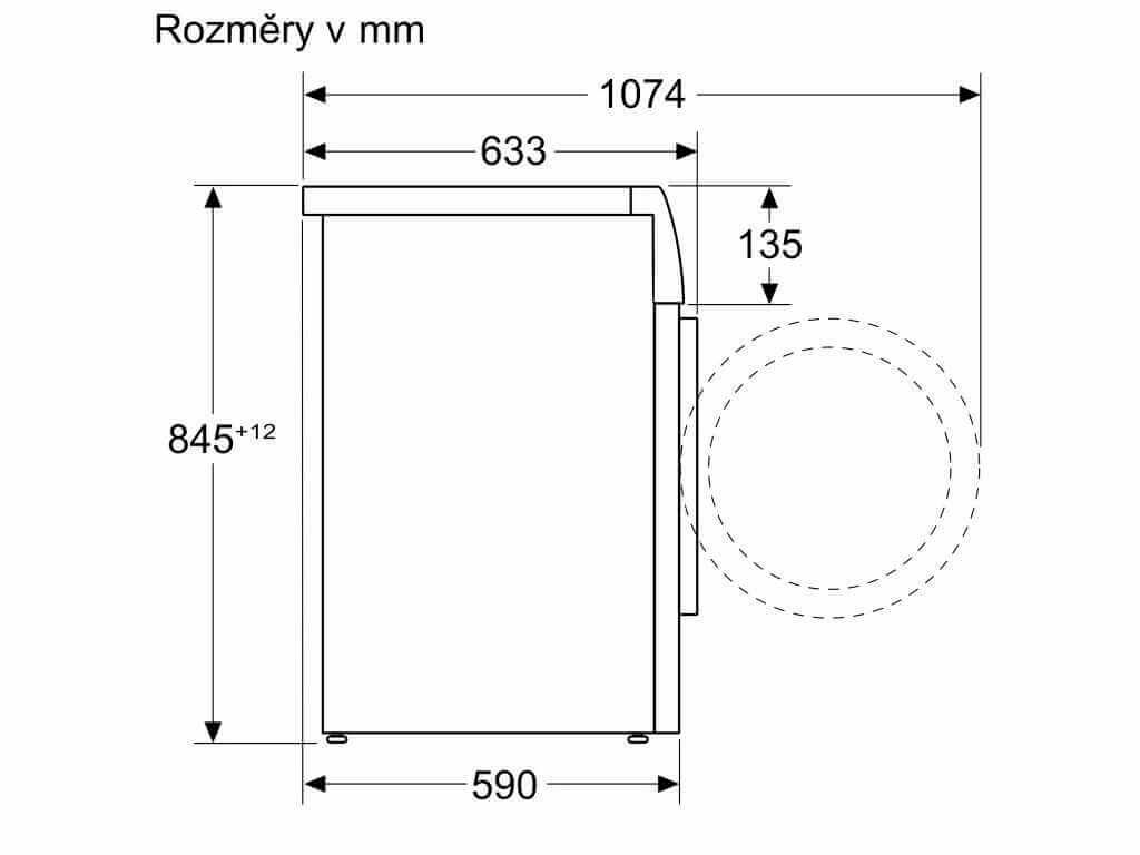 | Hloubka s otevřenými dvířky 90 stupňů | 1 074 mm |