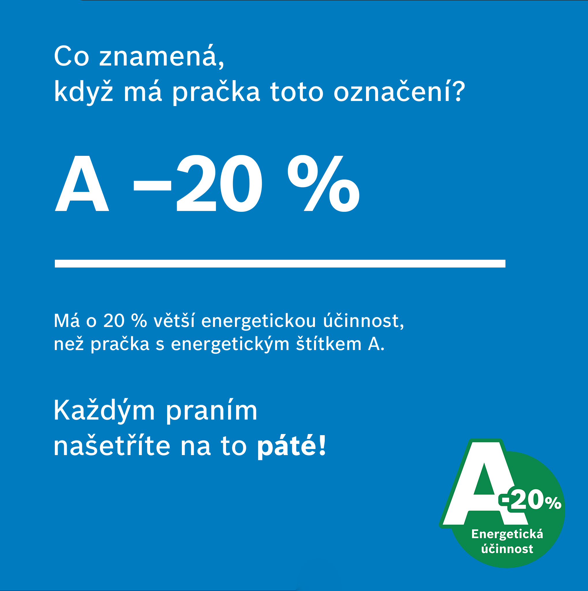 A -20 %: o 20 % účinnější než mezní hodnota třídy energetické účinnosti A****