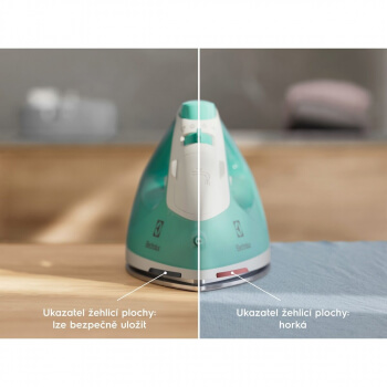 Výborně klouzající žehlicí plocha: Smaltovaná žehlící plocha, odolná proti poškrábání pro snadný skluz a výborné výsledky žehlení.