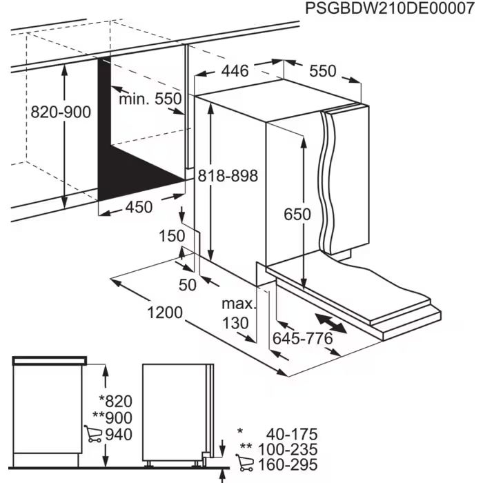 | Rozměry pro vestavbu | 820-900x450x550 mm |