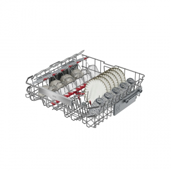 | Vlastnosti dolního koše | 4 front foldable tines with tine caps, 4 rear foldable tines with tine caps, glasscare support for wine and beer glasses, oven tray support, Nerezové držadlo, Tall flat rack frame |