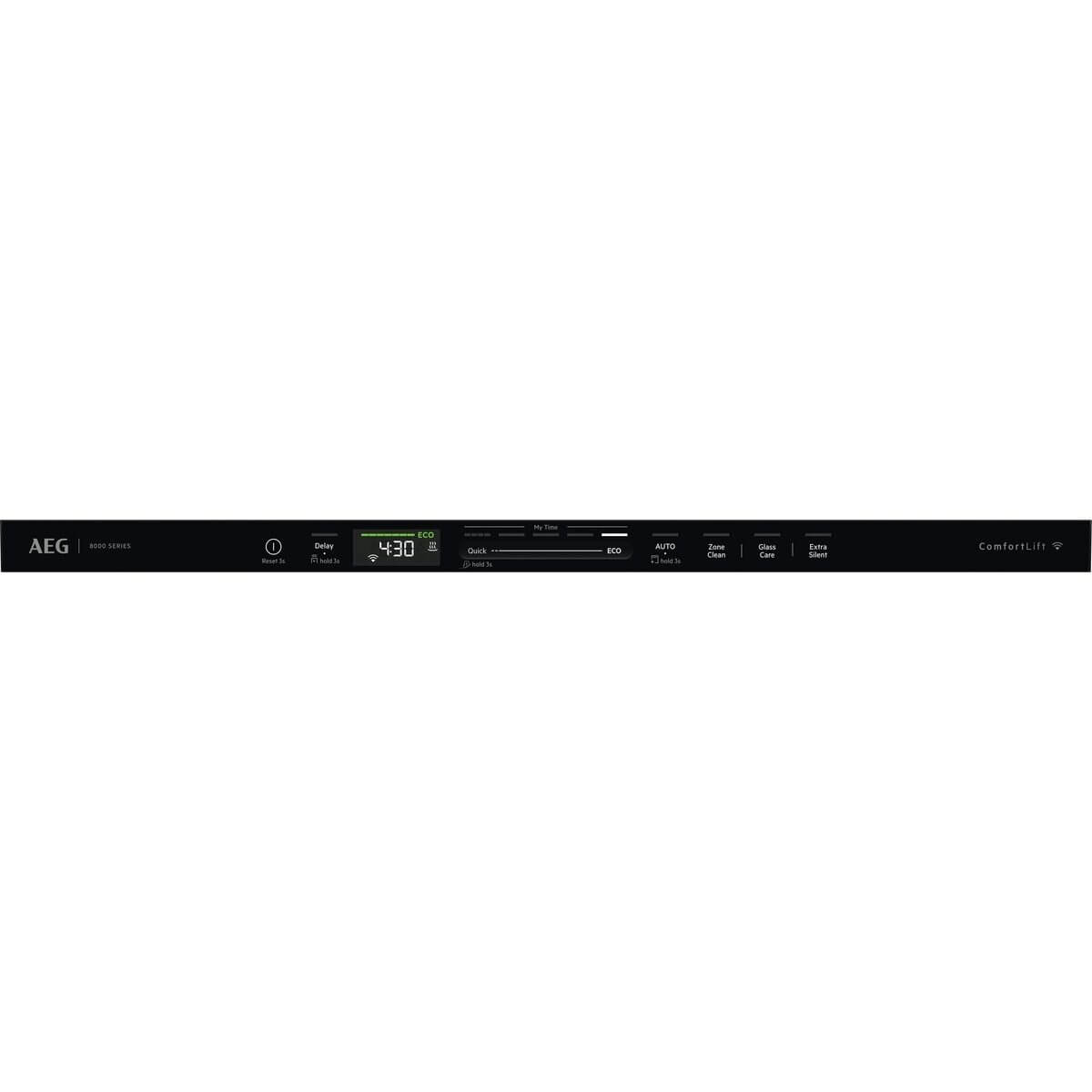 Indikace funkcí: budík, zpožděný start 1-24h, extra tichý, GlassCare, indikátor pro leštidlo, sůl, TimeOnFloor, ZoneClean