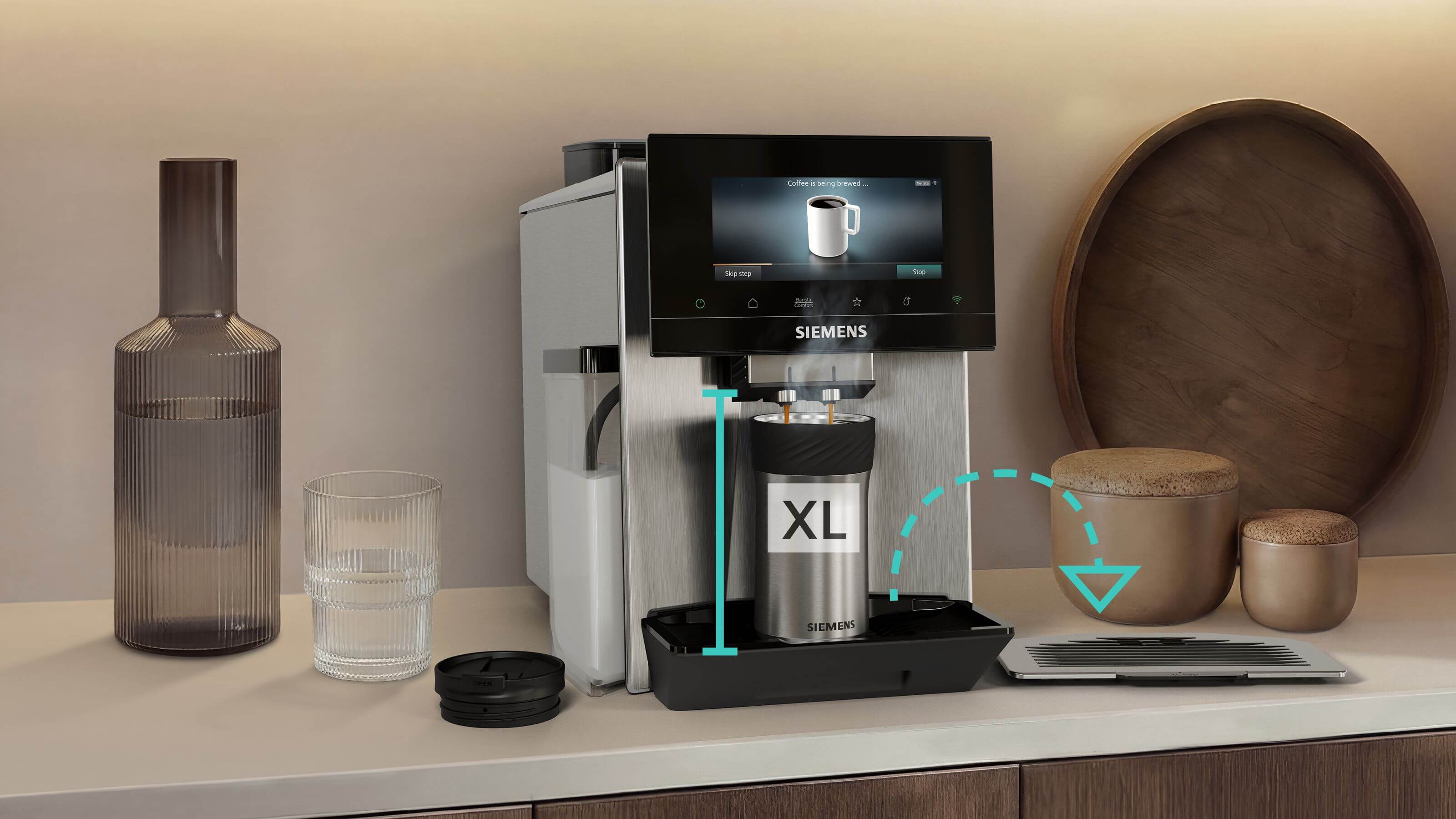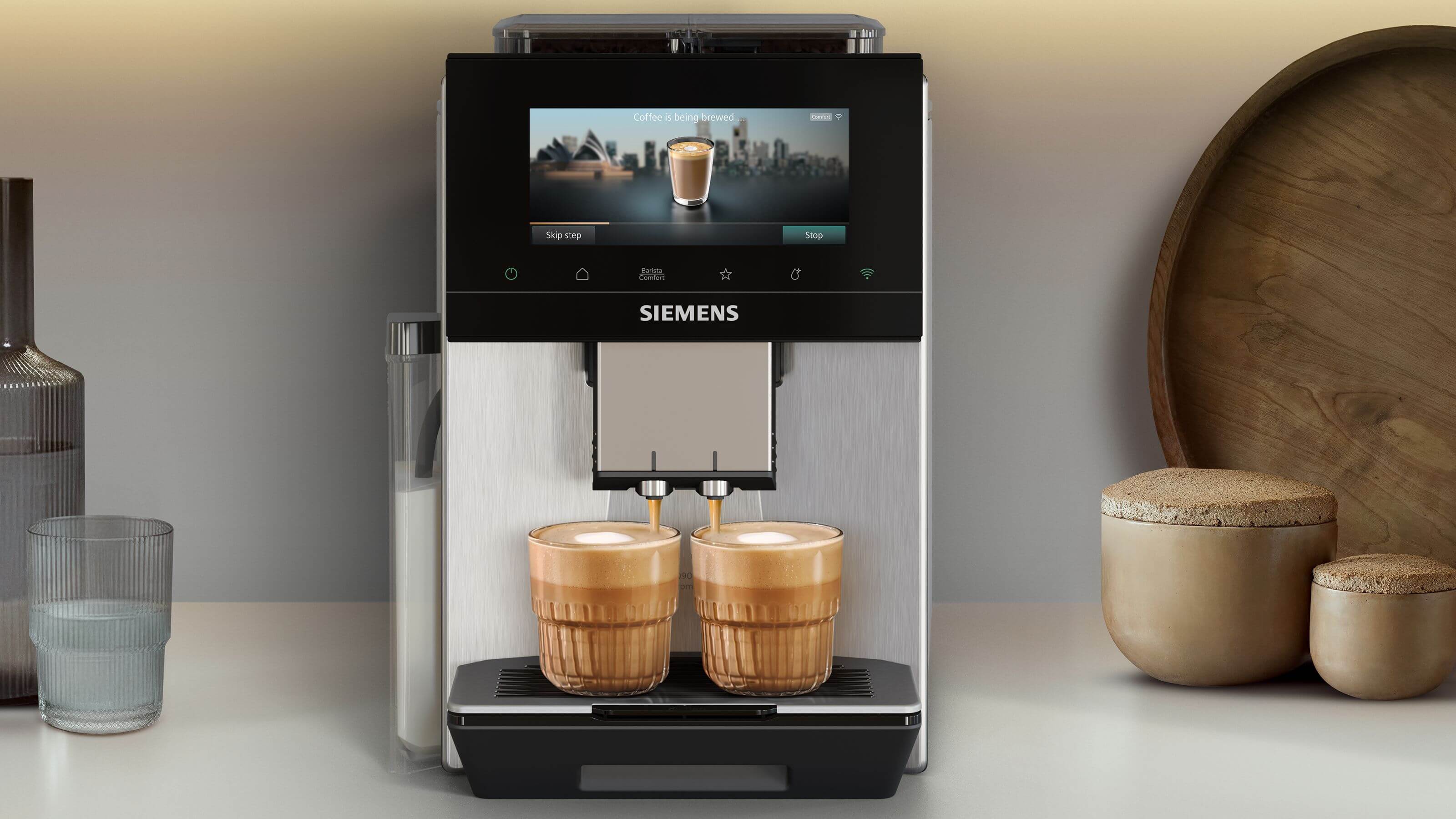 Díky technologii SuperSilent můžete začít relaxovat v momentě zapnutí kávovaru. Díky důmyslné konstrukci zařízení s optimální zvukovou izolací a speciálním těsněním je hluk výrazně snížen. To vše tvoří nejtišší plně automatický kávovar od Siemens.