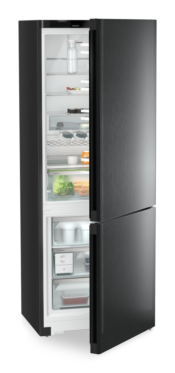 Prémiová chladnička Liebherr řady BLU Performance s extra šířkou 75 cm a celkovým objemem 485 litrů. Díky technologiím EasyFresh, DuoCooling a NoFrost uchová potraviny déle čerstvé — bez námrazy a bez přenosu pachů. Provoz je mimořádně tichý (35 dB).