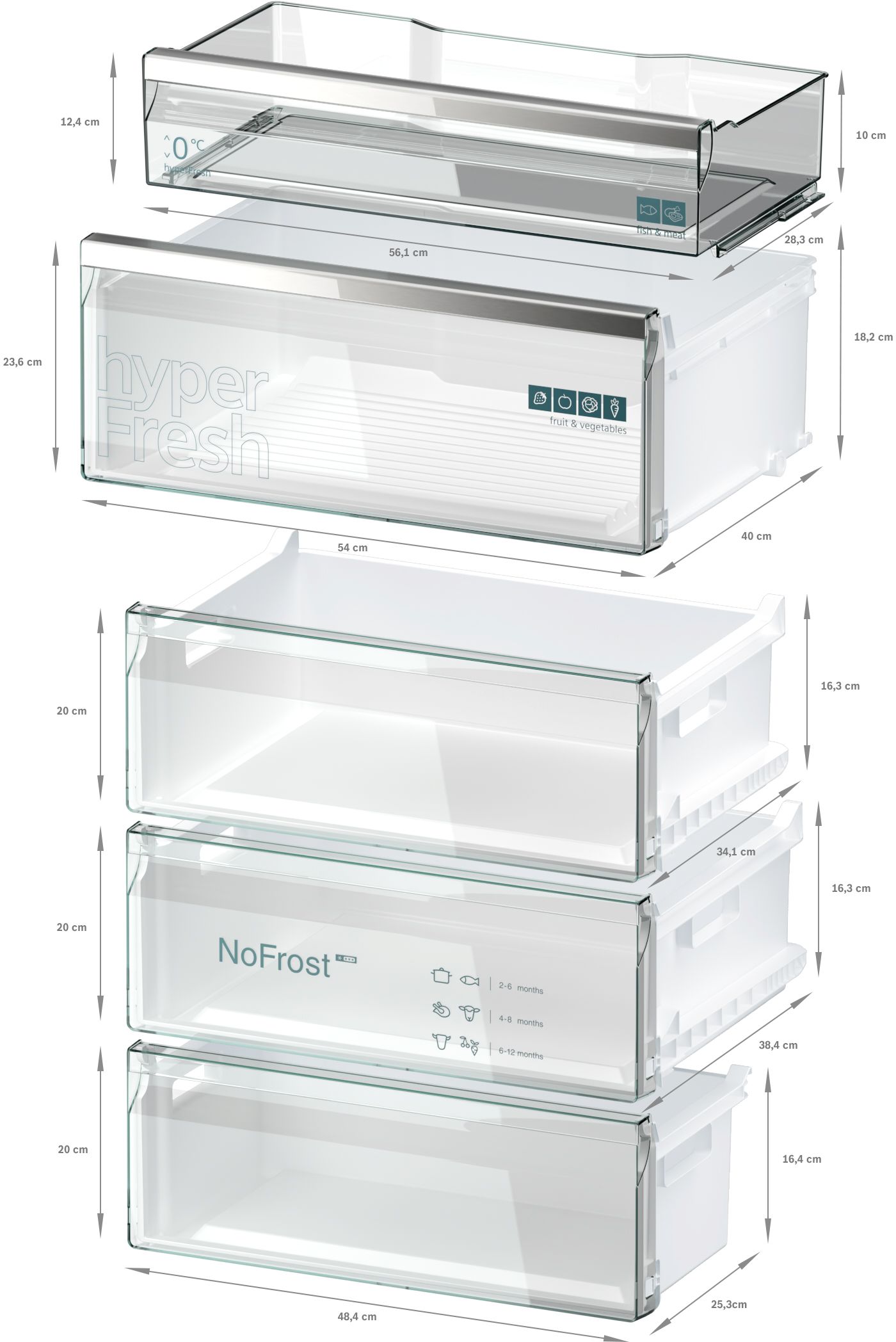3 x transparentní mrazicí zásuvka