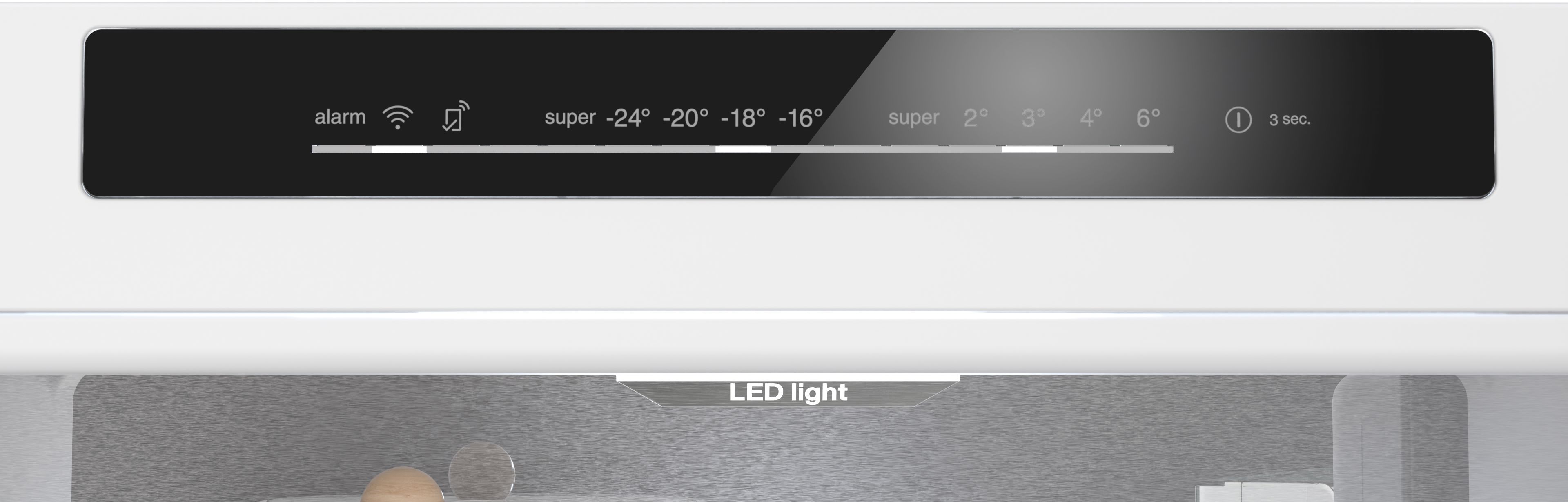 optický a akustický varovný signál při zvýšené teplotě ve vnitřním prostoru mrazničky