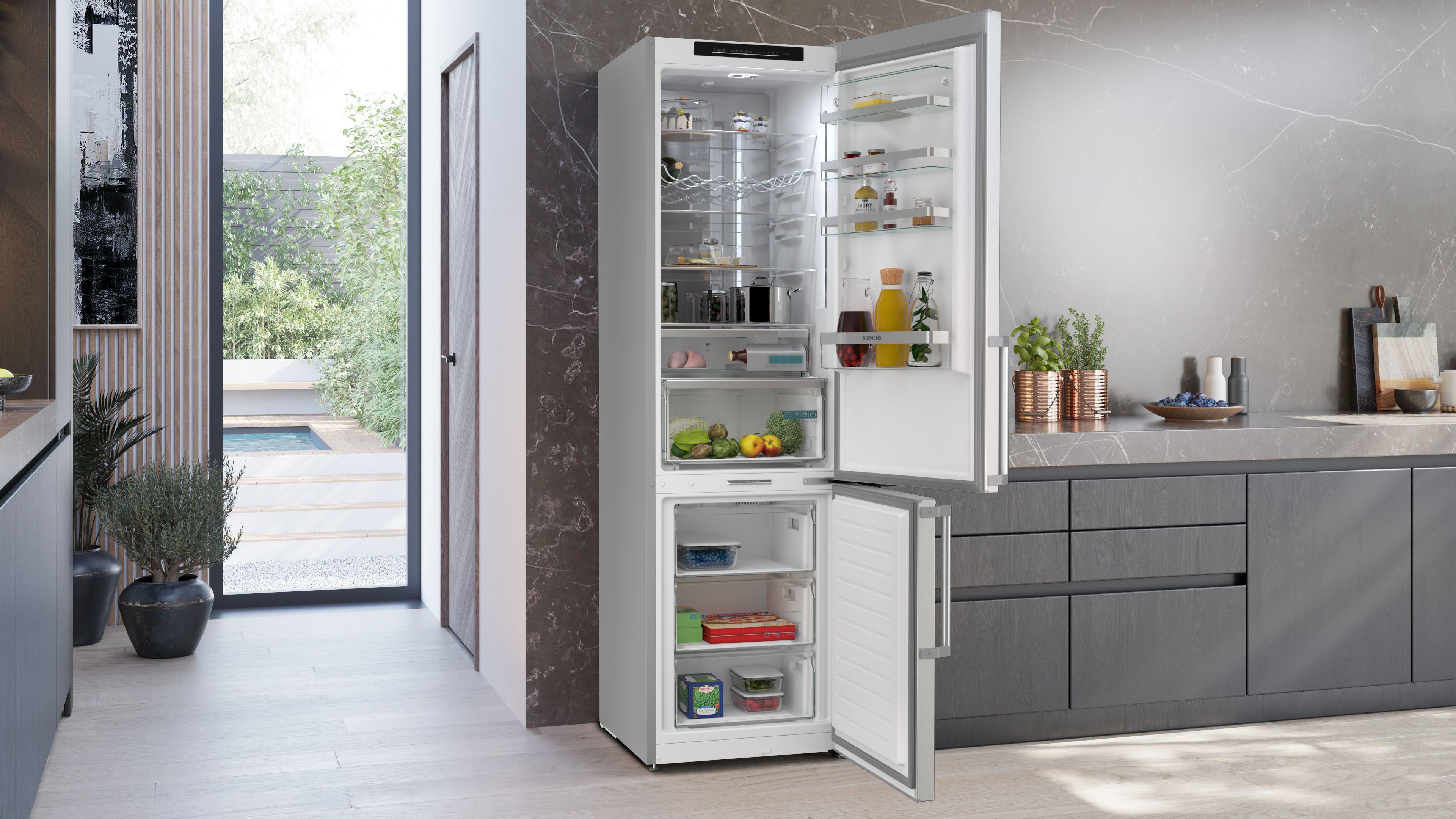 iQ500, Volně stojící chladnička s mrazničkou dole, 203 x 60 cm, Nerez