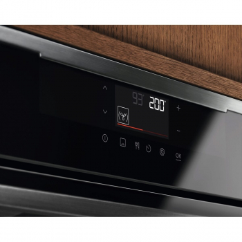 Elektronické funkce: nastavení hlasitosti minutky, dětský zámek, čas vaření, čas vaření s odhadem konce, přičítání času, 10 Variety of pre-set cooking programmes Assist, Acoustic signal (Buzzer), Aqua cleaning, automatické vypnutí, Odložený start, nastavení jasu disp., elektronická regulace teploty, Electronical door switch, výběr rychlého předehřátí, Function lock (in running mode), aktivace tónů, minutka, osvětlení trouby zapnout / vypnout (menu + samostatné tlačitko), ukazatel teploty (°C), ukazatel zbytkového tepla, info k servisu, doporučená teplota, denní čas