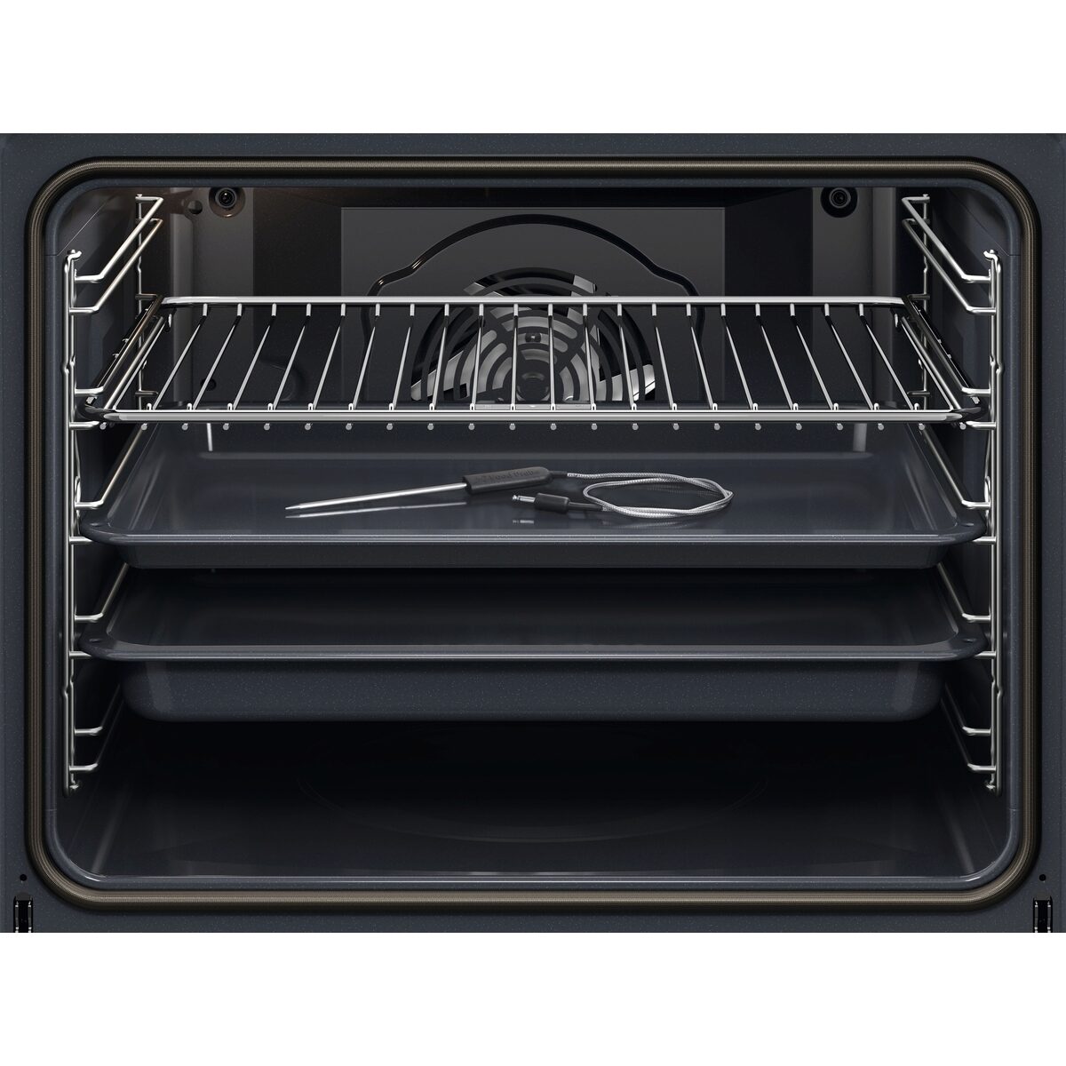 Teplotní sonda: Teplotní sonda je podstatná pro rozhodnutí, zda je již pokrm připraven. Je přímo spojena s ovládacím panelem a pracuje jako teploměr. Zasunete sondu do středu masa nebo ryby, nastavíte teplotu a až bude pokrm upečen tak, jak si přejete, budete na to upozorněni.
